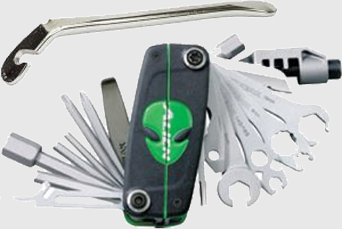 An Werkzeug sollte man ein Multitool und einen Reifenheber dabei haben.