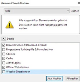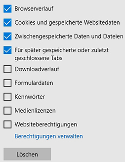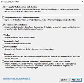 Relevant sind: Browserverlauf, Cookies und gespeicherte Webseiten,