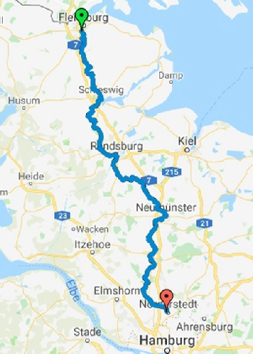 Zug bis Schleswig fahren und dann direkt zum Hotel