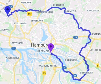 Es gab auch eine gekürzte Strecke bis zur Elbgaustraße (ca. 50 km).