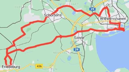 Jadebusen und danach über Varel und Zetel zurück, insgesamt