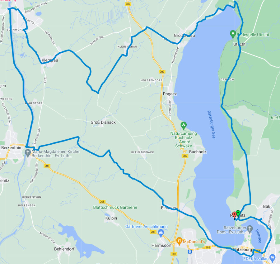 Zuerst ging es am Ostufer des Ratzeburger Sees nach Norden bis